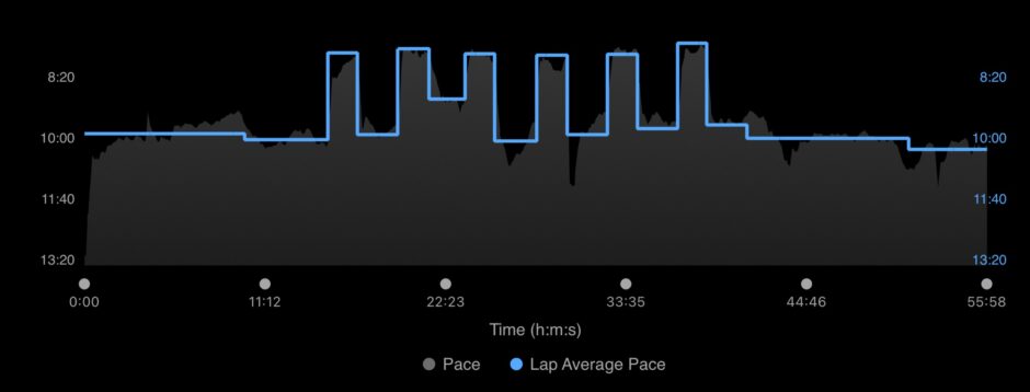 I had a serious debate with my weaker self this morning, and I am happy to say: I won. My weaker self really didn’t want to run, but I knew that I just had to get myself out the door, so I did some clever negotiating. It works 99% of the time. And as I could have reliably predicted: this interval run was so much fun!!!